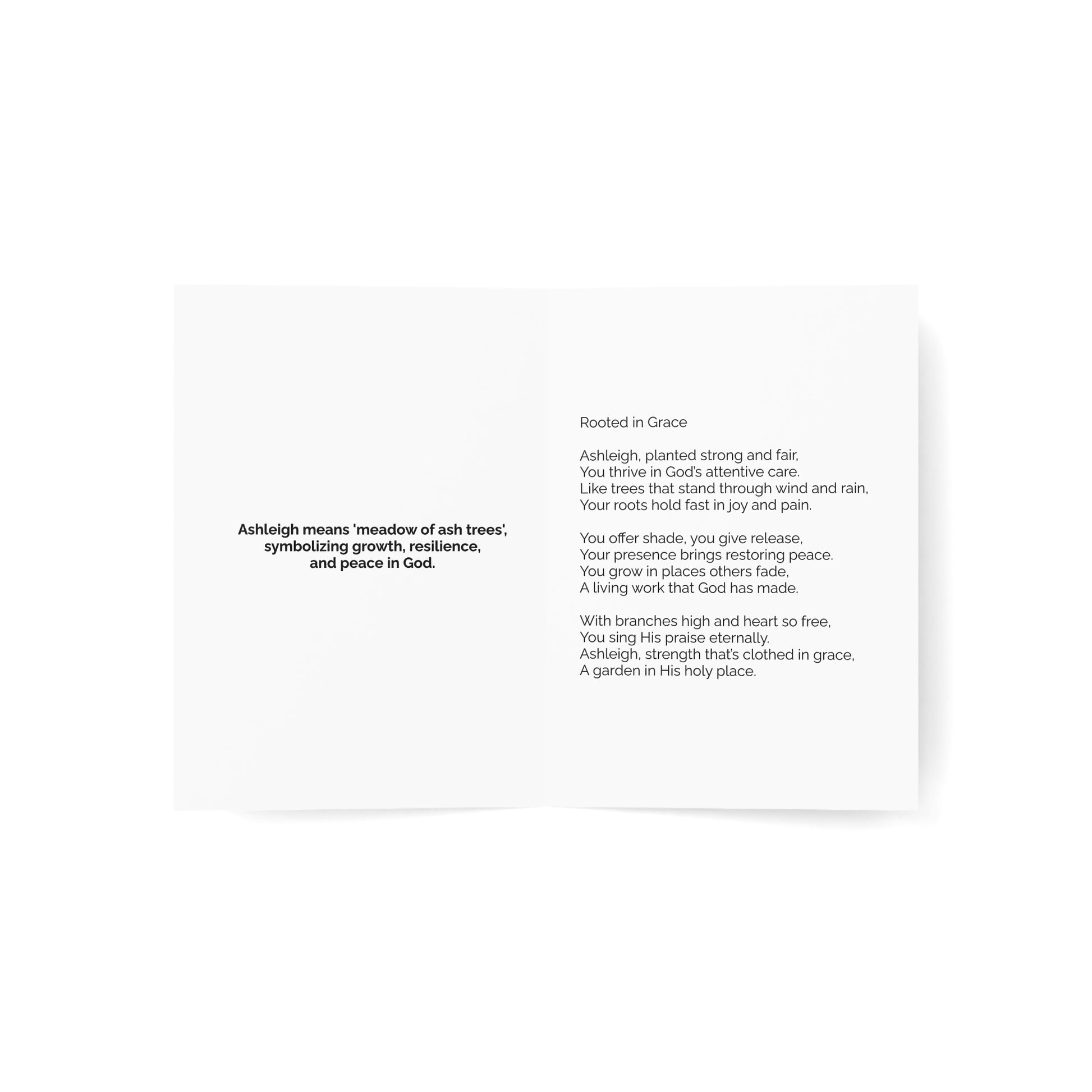 - Inside Right: A personalized 12-line custom poem inspired by their name's meaning - crafted to uplift, inspire, and bless.