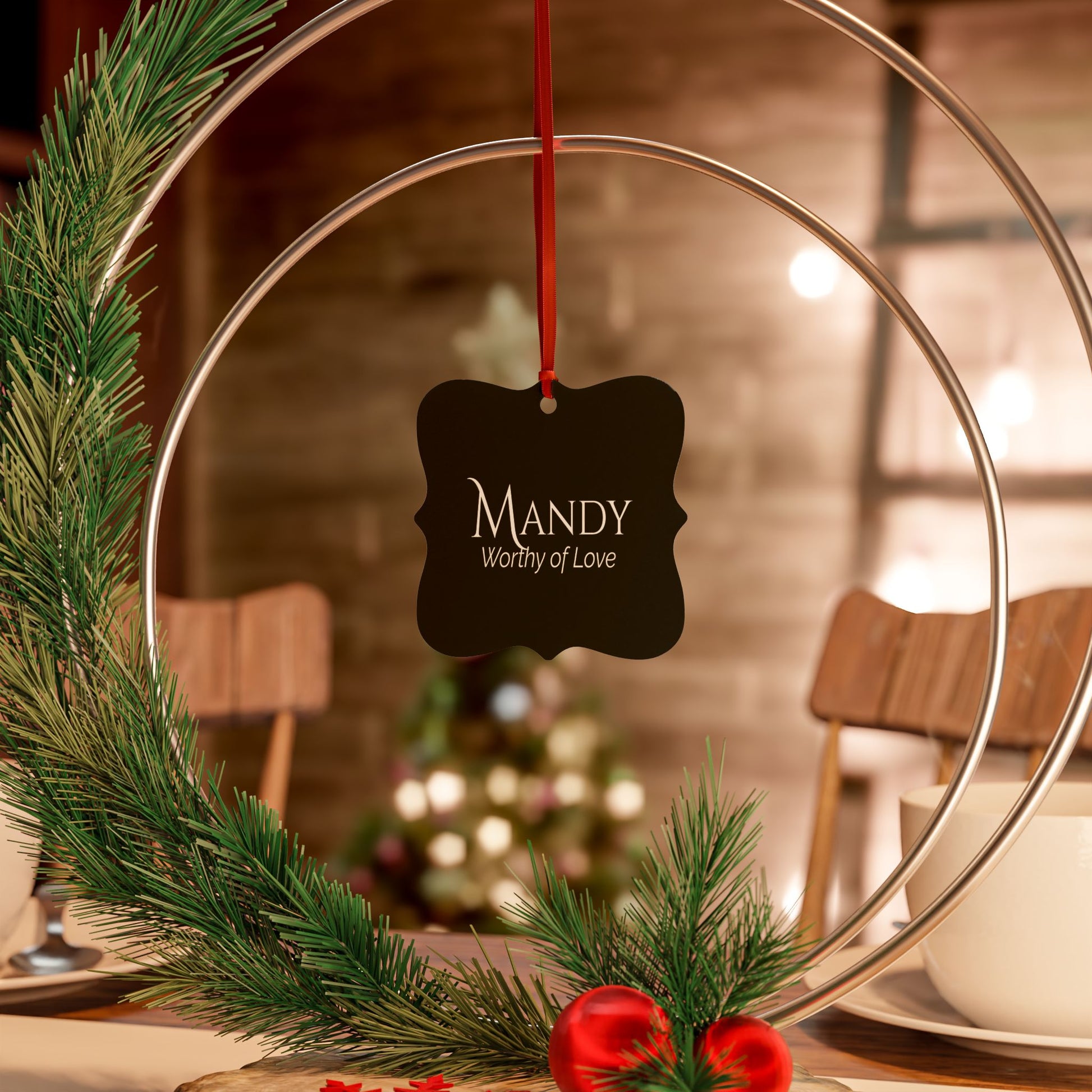 Add a touch of elegance and inspiration to your holiday decor with these stunning aluminum ornaments. Each piece features a sleek matte finish, and a custom phrase that represents the spiritual and symbolic meaning behind yours and your loved ones names. Perfect for Christmas trees, festive gatherings, or as thoughtful gifts, these ornaments are versatile enough to fit any celebration. Ideal for families, friends, and anyone who loves personalized decorations. Great for Christmas, holidays, and special occasions!