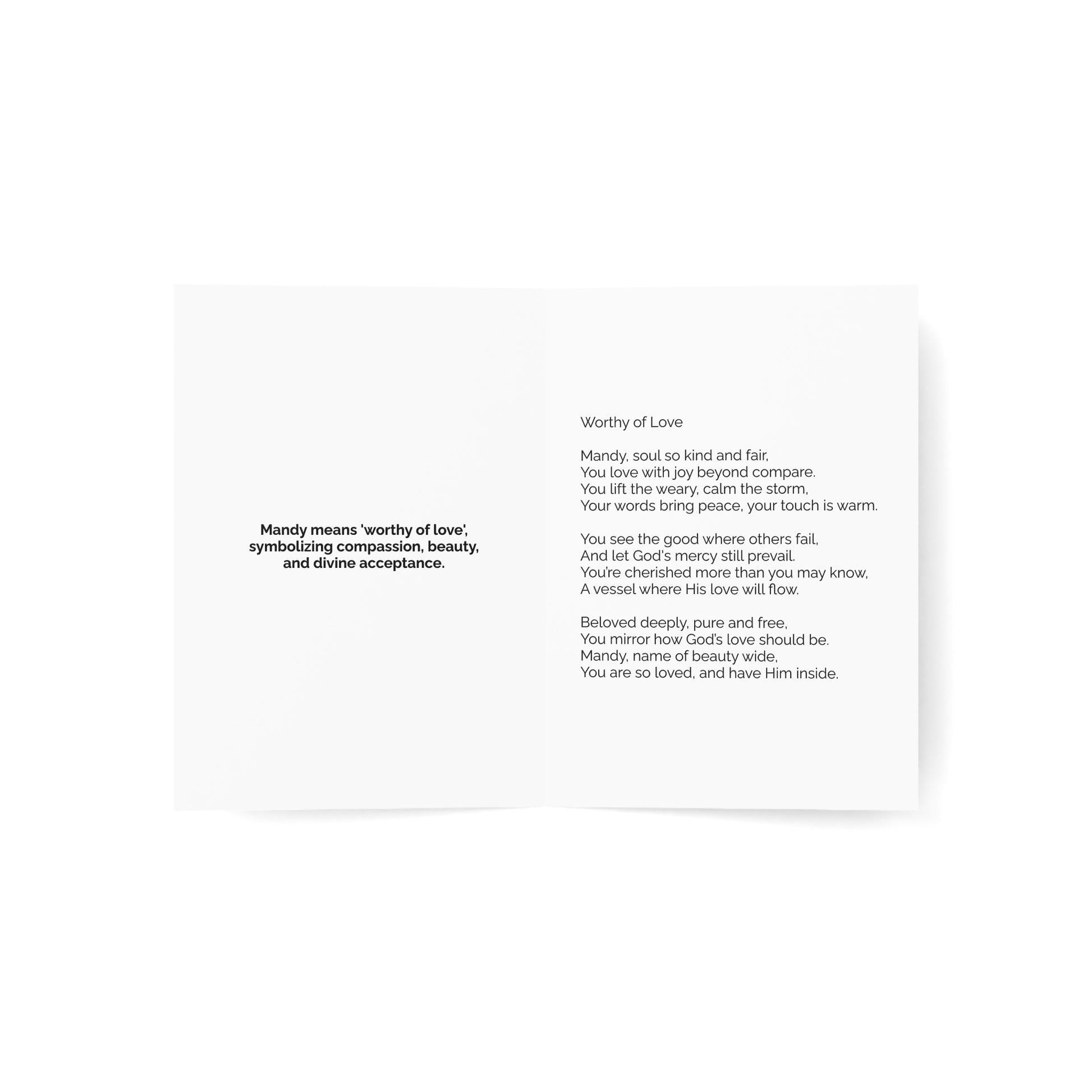 - Inside Right: A personalized 12-line custom poem inspired by their name's meaning - crafted to uplift, inspire, and bless.