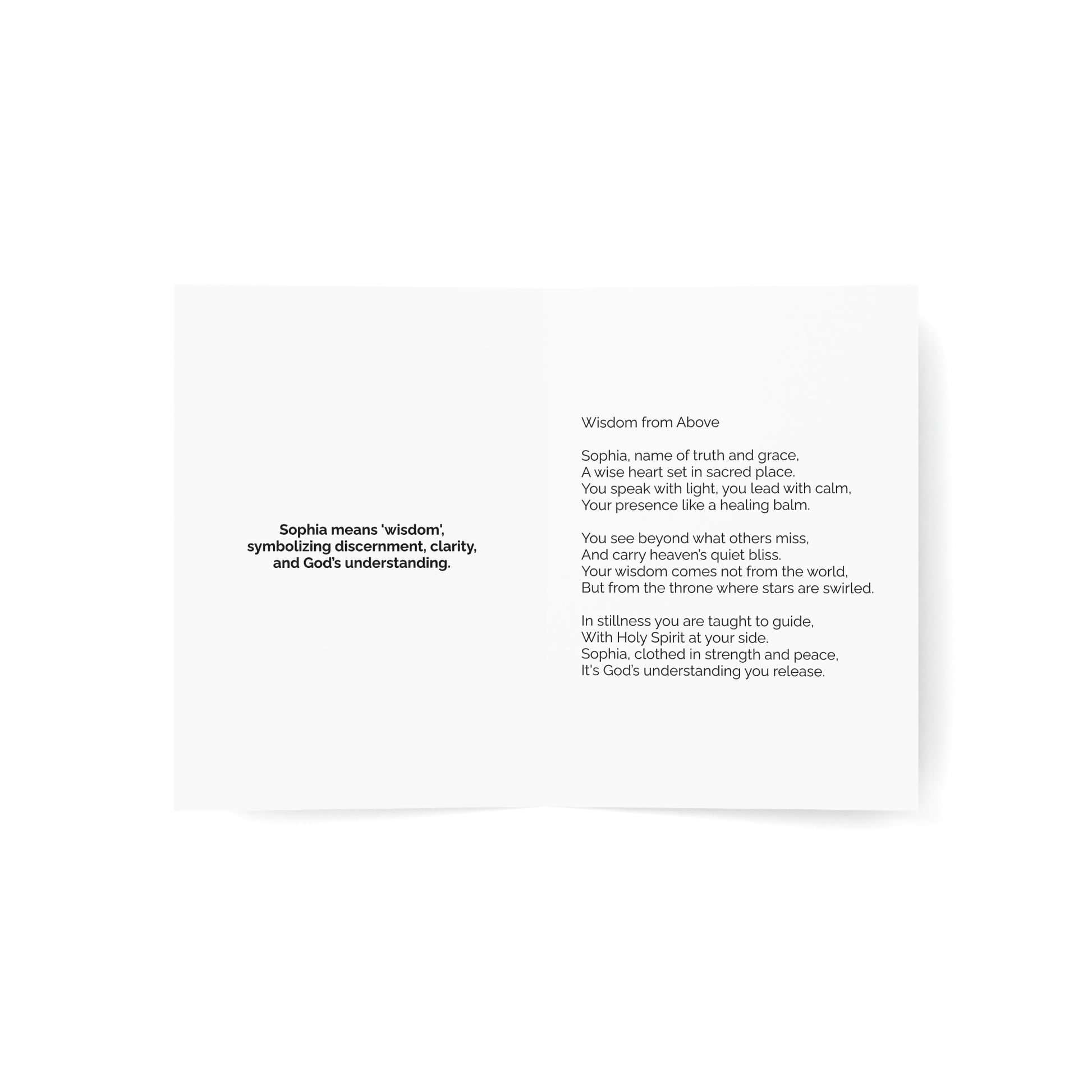 - Inside Right: A personalized 12-line custom poem inspired by their name's meaning - crafted to uplift, inspire, and bless.